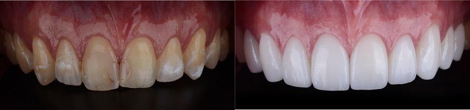 ข้อควรระวัง: อาหารและเครื่องดื่มที่มีสีเข้ม เช่น กาแฟ ชา หรือไวน์แดง อาจทำให้คอมโพสิตวีเนียร์เปลี่ยนสีได้